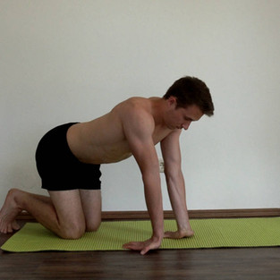 Die Gegenbewegung zu dieser Übung sieht folgendermaßen aus. Gehe in die Bankstellung. Setze die Hände weit nach vorne ab. Drücke nun die Schultern nach unten. Der Oberschenkel sollte weiterhin Senkrecht nach oben zeigen.